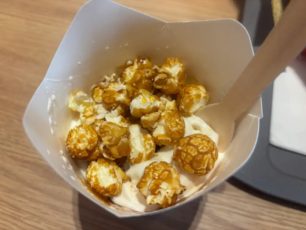 МакФлури Попкорн-Карамель (112 грн). Традиционное мягкое мороженое с хрустящими шариками сладкого попкорна. Интересно и неплохо. На мой вкус, слишком сладко, поэтому рекомендую запивать это кофе.