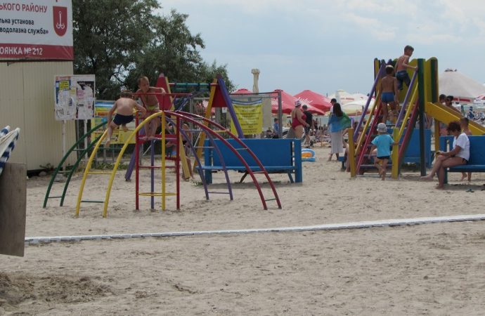 Встречаются на таких пляжах и водные горки: один спуск для детей — 20 гривен, для взрослых — 25 гривен, на 3 спуска – скидка. Есть батуты: 5 минут — 10 гривен, безлимит — 100 гривен.
