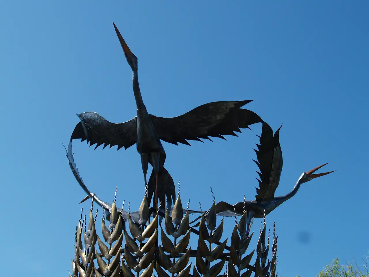 Сельский голова Дмитрий Бущан вместе с местным художником Фёдором Шевченко установили в центре Бобрика Первого монумент аистам.
