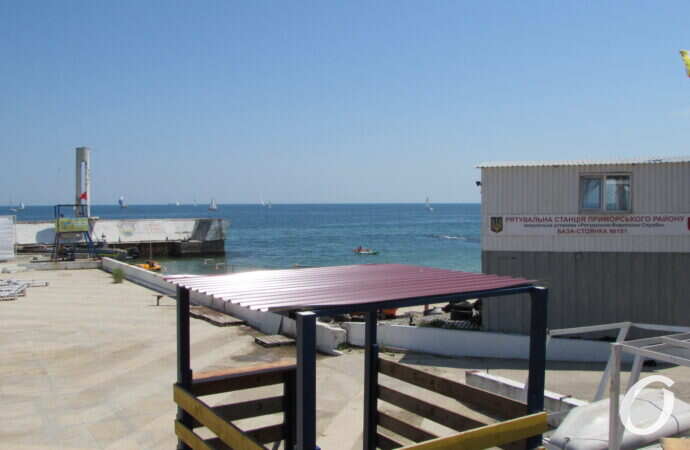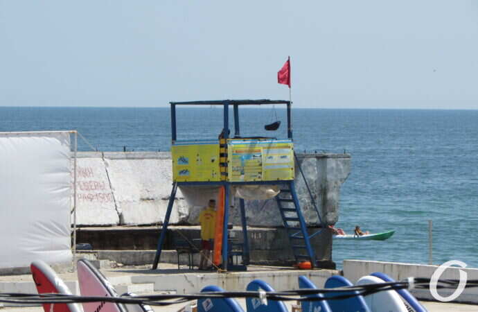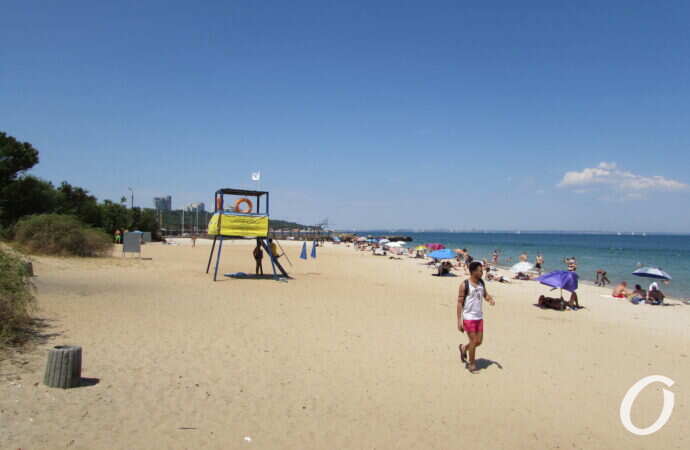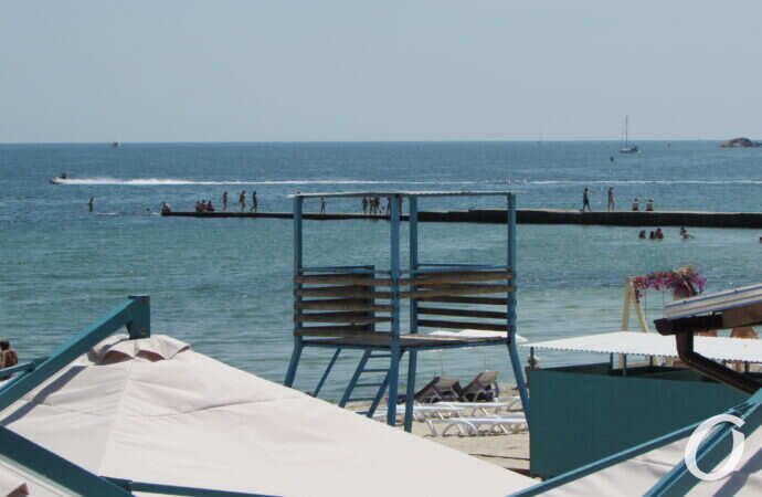 Наш корреспондент отправился дальше. Следующая вышка недалеко – на пляже Дельфин возле танкера «Delfi». На этот пост также добавили полицейских, которые помогают спасателям следить за обстановкой возле затонувшего судна. А далее на Дельфине никаких вышек и спасателей нет. И так аж до Аркадии.