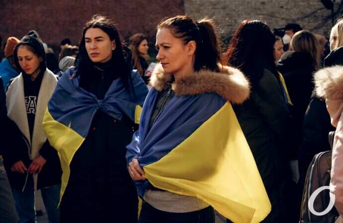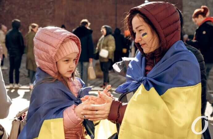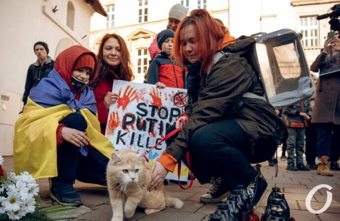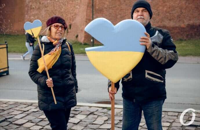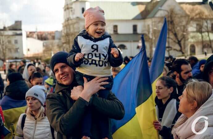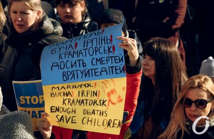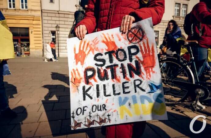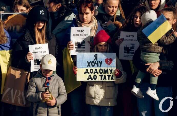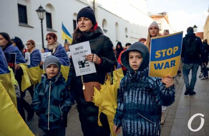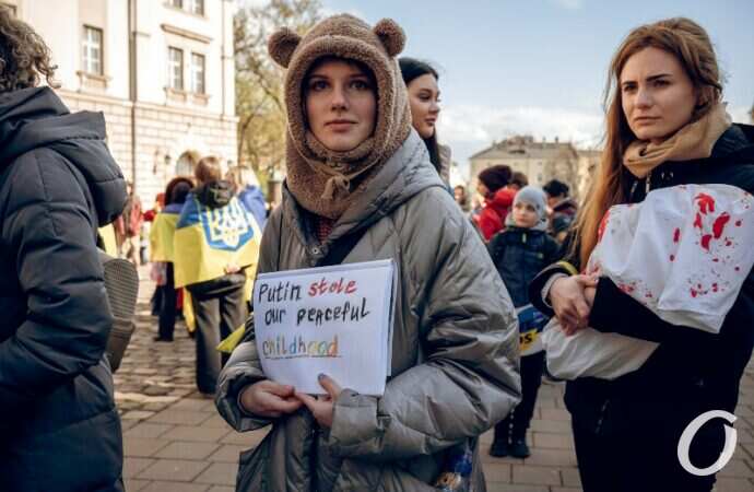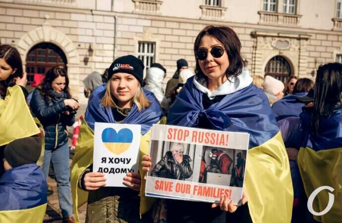 На плакате одной девочки с сине-желтым флагом на плечах было написано: «Я хочу домой к папе!». И вполне можно представить, что все участники акции с удовольствием приехали бы в весенний Краков на чашку кофе и купили бы детям традиционный краковский бублик. Но сегодня они здесь не по своей воле. Сегодня они идут по улицам Кракова, чтобы мир не закрывал глаза на войну в Украине. Они идут по улицам Кракова, но мысленно в сожженных, разрушенных и разграбленных городах Украины. Они идут по улицам Кракова, но сердцем со своими мужьями, братьями, сыновьями, отцами, которые отважно защищают Украину. Они идут по улицам Кракова и оплакивают всех невинно убитых детей и их родителей. Они идут по улицам Кракова…