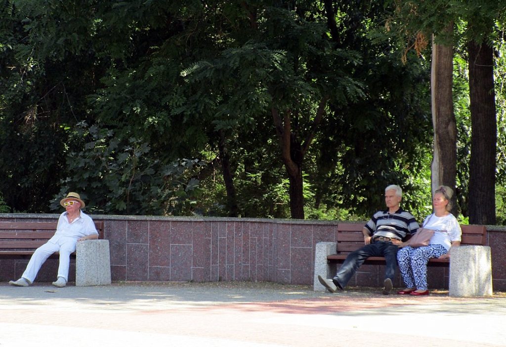 Одинокие люди, пришедшие отдохнуть, мамы с колясками прячутся в тень или спешат к «драгоценному» фонтану (работает!): хоть какая-то прохлада…