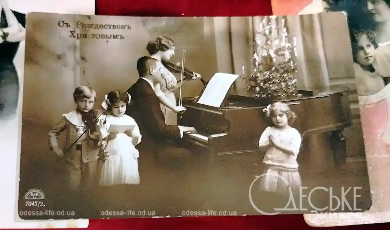 В музее-кафе «Старая Одесса» в этом году рождественскую елку украсили по-особенному. Рядом с елочными игрушками здесь разместили старинные поздравительные открытки начала ХХ века — те самые, которыми более ста двадцати лет назад люди поздравляли друг друга с Рождеством.