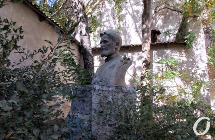 А еще на Степовой есть свои мини-закоулочки, кажущиеся таинственными даже в солнечный день. Имеется здесь и еще одно «таинство» — бюст без «опознавательных знаков». Стоит тихо, спрятан в кустах — у входа в бывший завод им. Хворостина (МПО «Орион»). Помнится, интересовалась я у местных, кто ж это такой? Вариантов ответов было множество: «хозяин завода, который был здесь еще до революции», «это Мизикевич»… Благодаря автору проекта «Старая Одесса в фото» Евгению Волокину я узнала, что это памятник Хворостину. Стоит он и по сей день…