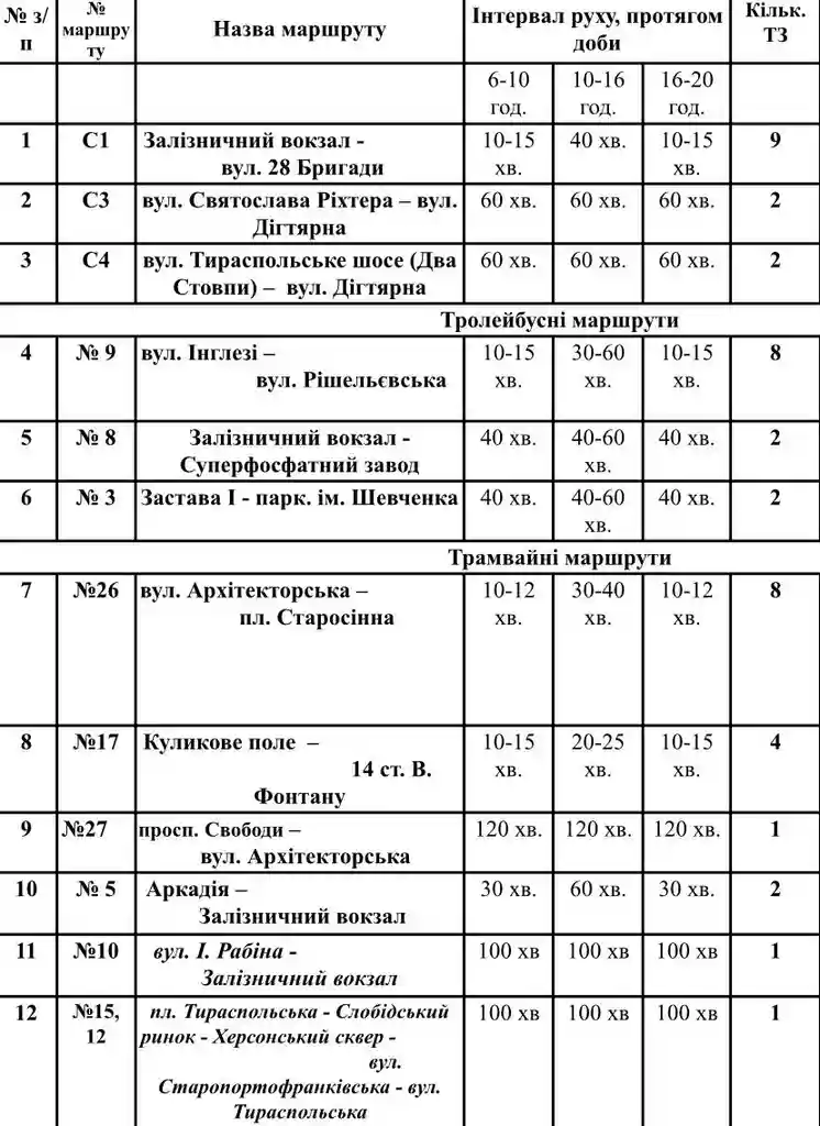 По состоянию на 7 января в Одессе курсируют такие маршруты: