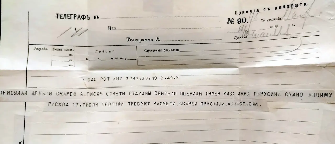 Эта телеграмма — как машина времени. Она пришла к нам из XIX века, когда Одесса была огромным торговым портом, где греческие бриги и каики стояли бок о бок с английскими и французскими пароходами.