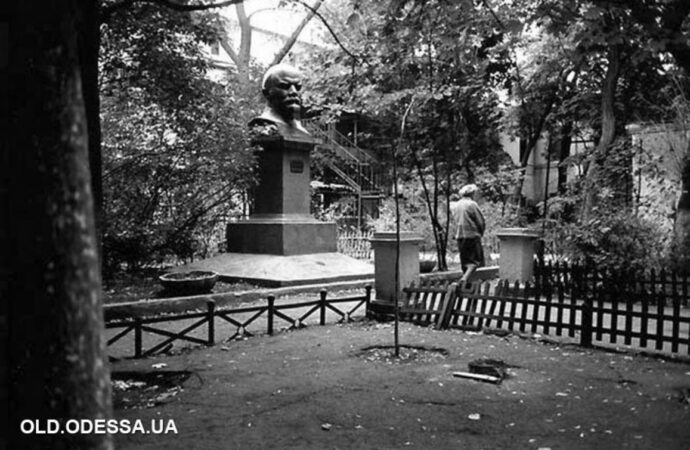 Что еще было внутри двора уже в советские времена? Памятник Ленину. Благодаря проекту Евгения Волокина «Старая Одесса в фото» мы можем увидеть, как выглядел бюст Ильича во дворе дома Вагнера. Ленина, конечно, убрали, а вот постамент сохранился. Кстати, есть местная легенда (впрочем, кто знает?), что местный почитатель вождя после демонтажа бюста долгое время прятал его в трансформаторной будке.