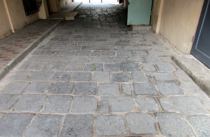 Сохранились от прошлого и «обычные» лавовые плиты, внутри располагаются сразу четыре двора. Кстати, здесь сохранилось и ограждение клумбы, где работал собственный внутридворовой фонтан.