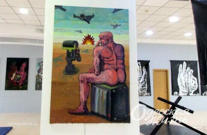 Организаторы представляют эту обширную экспозицию как «результат экспериментирования художников с пространством». Одесские авторы — Владимир Уманенко, Ярослав Войцеховский, Денис Недолуженко и многие другие — показали свое видение войны, выплеснув, кажется, всю гамму своих переживаний, волнений, собственного эмоционального шторма, с которым война ворвалась в нашу жизнь.