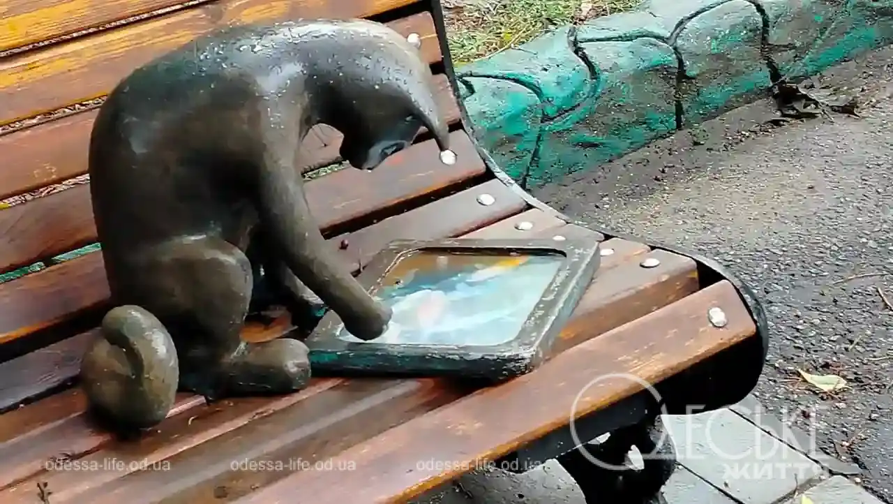 А Кошка-геймер, известный одесский арт-объект, сидит себе с гаджетом в лапах. Вчитывается, всматривается — наверное, тоже проверяет погоду. И совсем не замечает, что промокла.