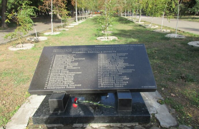 …Мы стоим с председателем Одесской региональной ассоциации евреев – бывших узников гетто и нацистских концлагерей Романом Шварцманом у Аллеи праведников мира. Роман Маркович рассказывает, что в скором времени в сквере появится музей Холокоста.