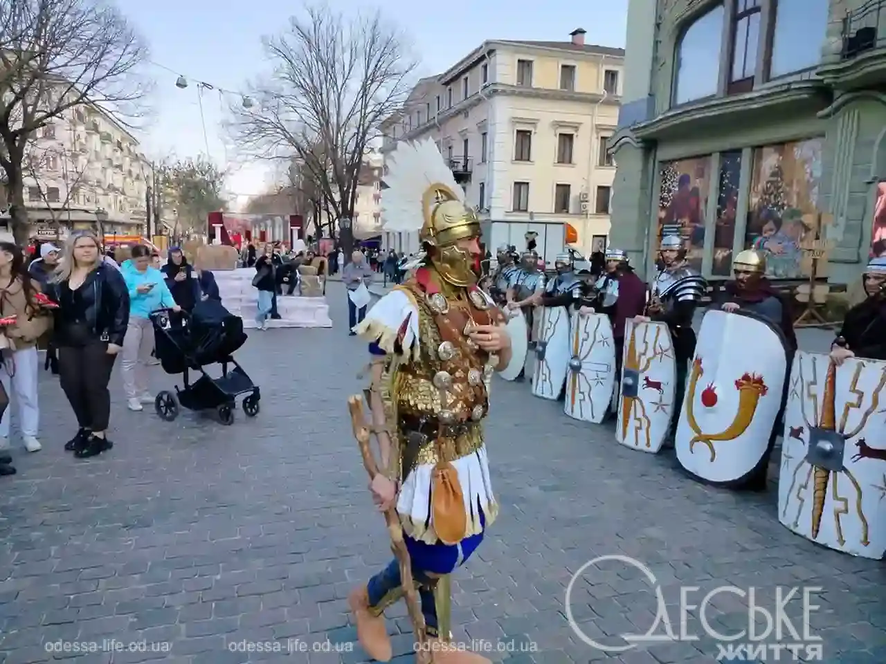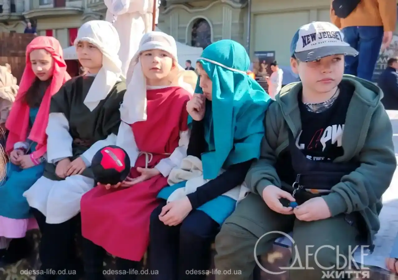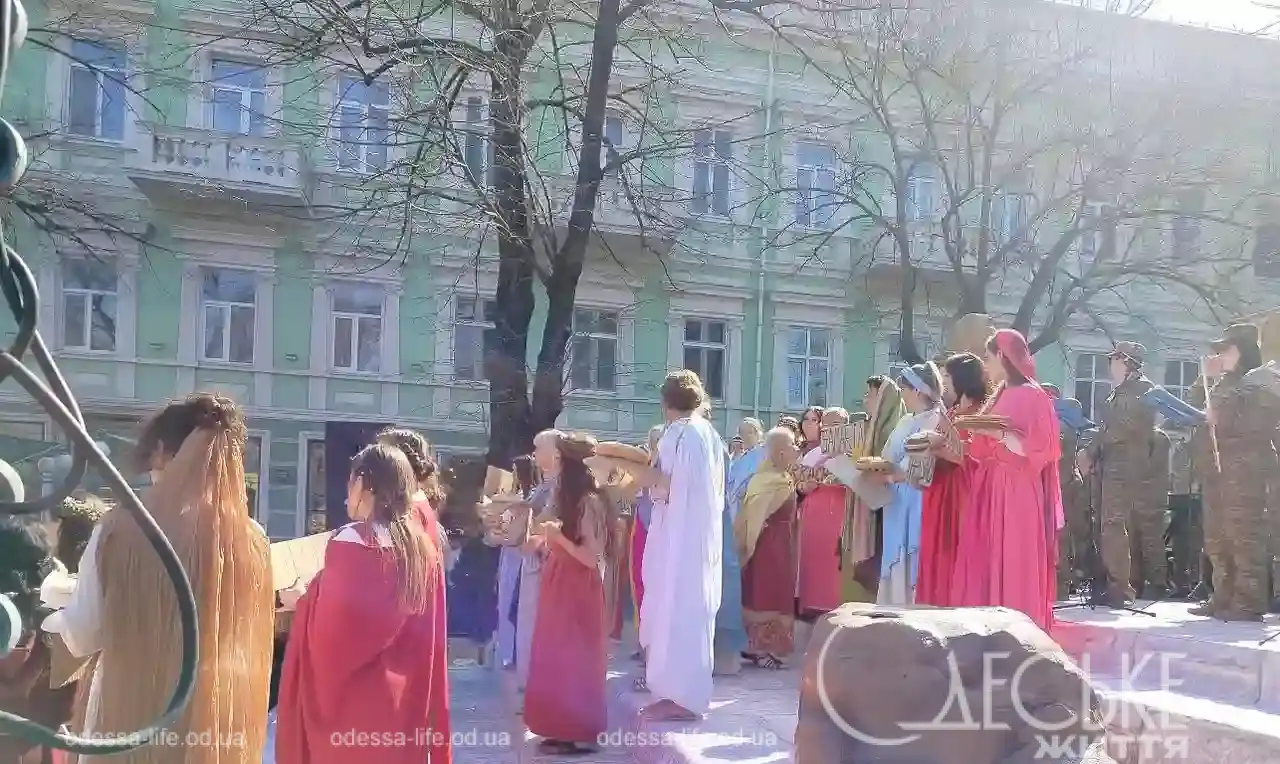 В центре Одессы 5 апреля можно было буквально «перейти» между эпохами. Репортер «Одесской жизни» побывала на пасхальной реконструкции на Дерибасовской и увидела, как город на несколько часов превратился в живую историю — с римскими легионерами, библейскими сюжетами и искренними эмоциями зрителей.