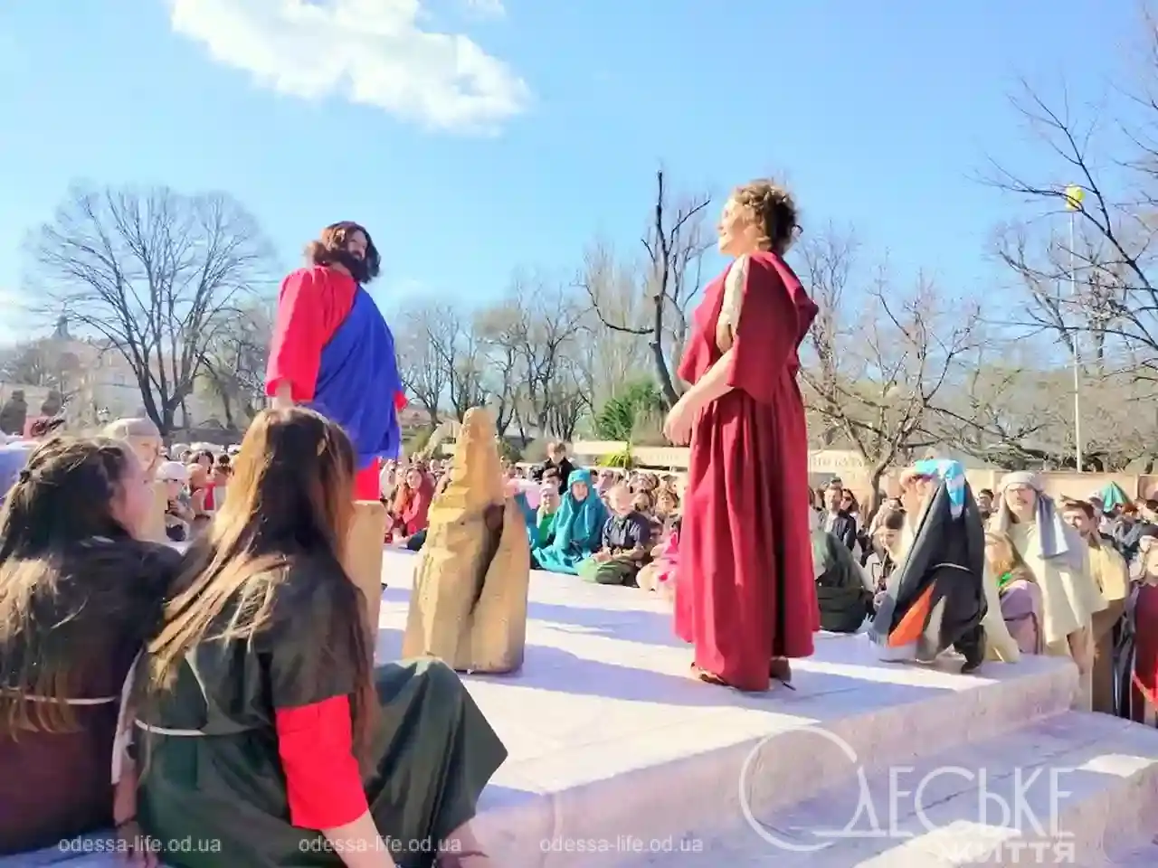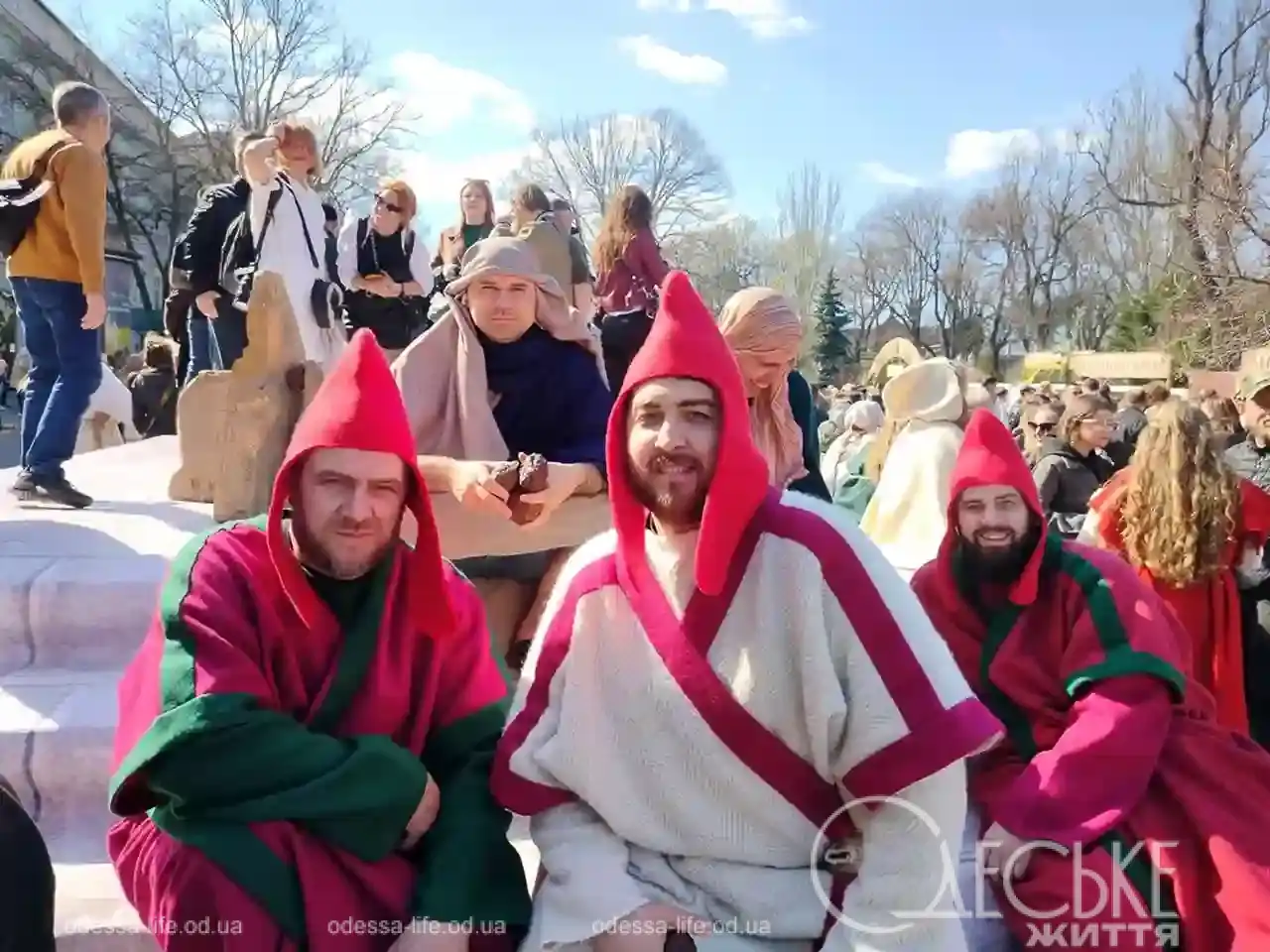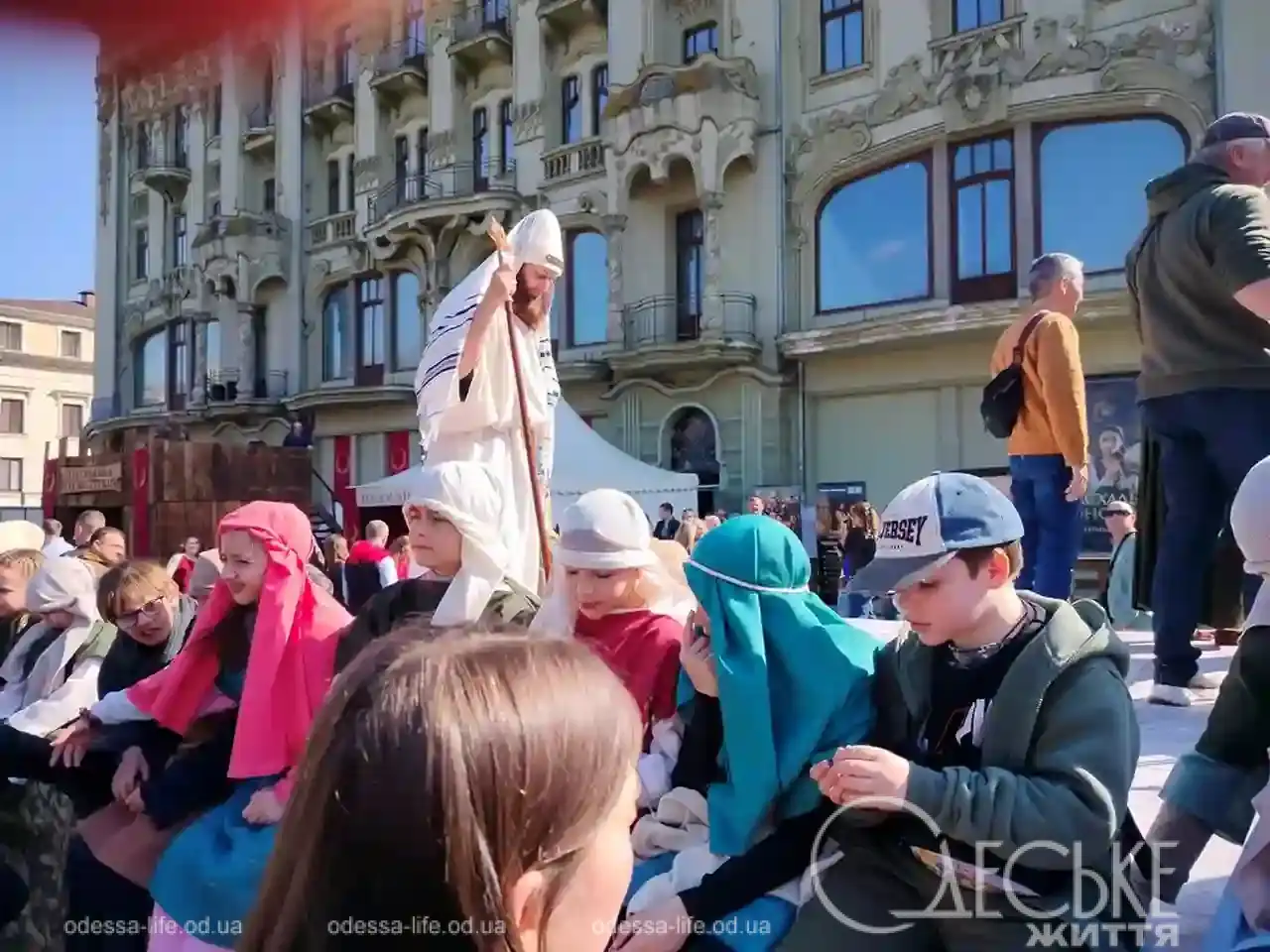 В центре Одессы 5 апреля можно было буквально «перейти» между эпохами. Репортер «Одесской жизни» побывала на пасхальной реконструкции на Дерибасовской и увидела, как город на несколько часов превратился в живую историю — с римскими легионерами, библейскими сюжетами и искренними эмоциями зрителей.
