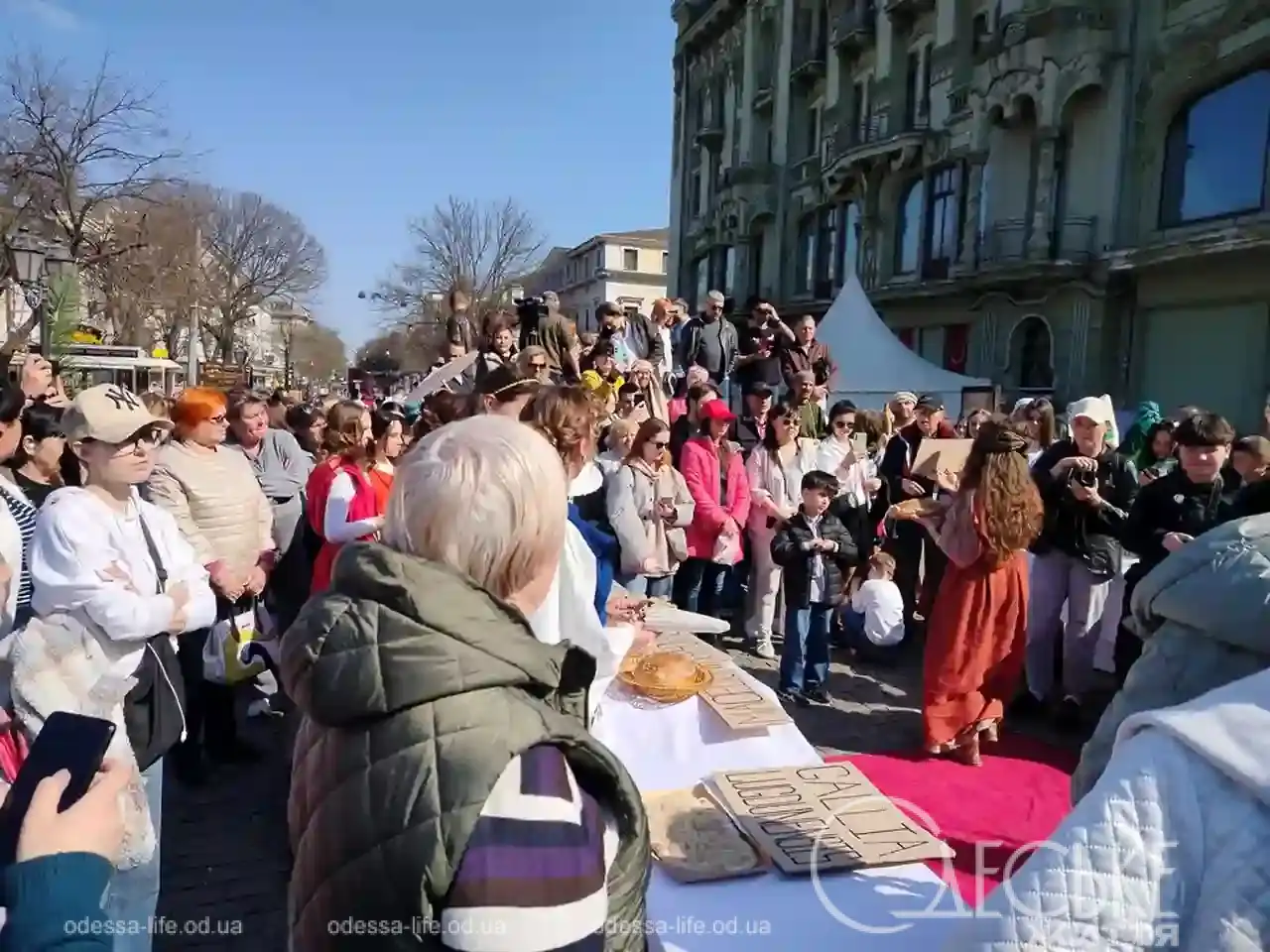 Дети снова тянутся ближе, взрослые улыбаются, кто-то крестится, кто-то молча смотрит вперед. И в этот момент Дерибасовская перестает быть просто центром города — она становится местом встречи не только поколений, но и эпох.