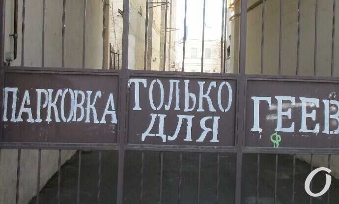 «Шоб вы нам были здоровы»… «Парковка только для геев» (это еще довоенное), Петя и Гаврик посматривают из давних времен на сегодняшнюю Молдаванку. Все эти маленькие шутки-радости на Молдаванке сегодня особенно радуют глаз.