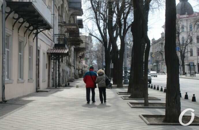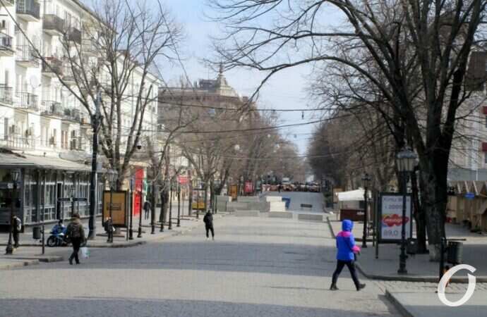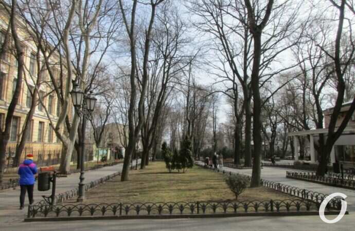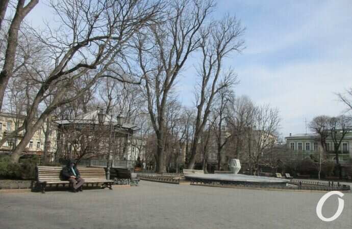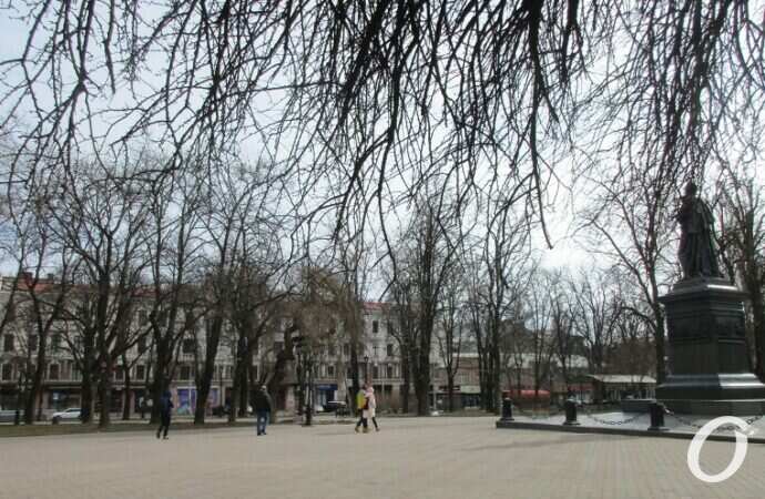 Улицы малолюдны. Горсад открыт. Вход в Летний театр закрыт. Людей немного и на Дерибасовской, и в том же Горсаду, и на Соборке, и на бульваре Жванецкого. В основном люди сейчас выходят строго по делу, впрочем, некоторые присаживаются и на скамейки.