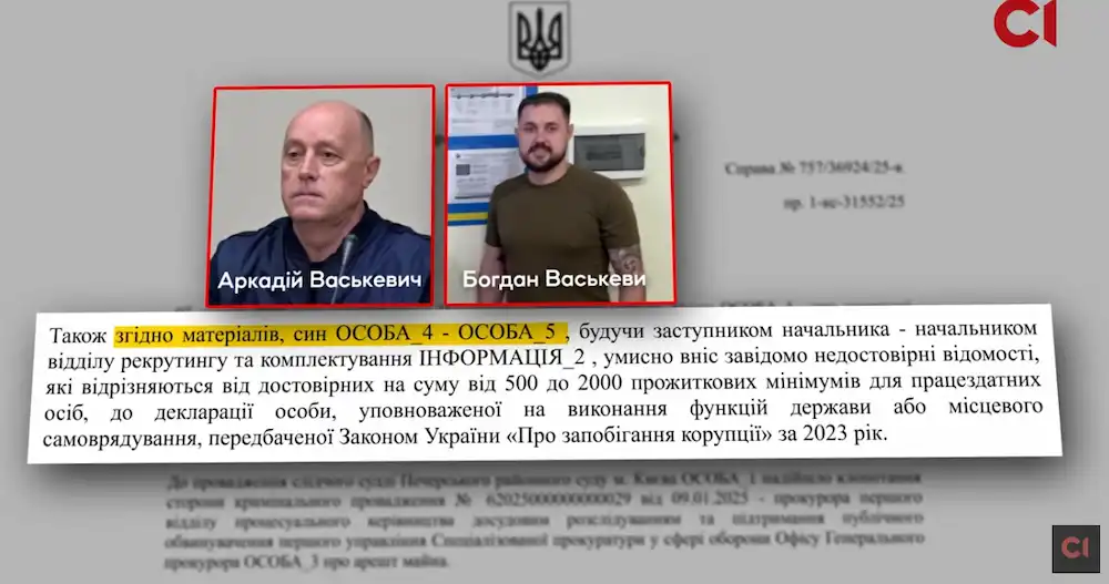 Следователи ГБР установили, что Аркадий Васькевич, возглавляя Овидиопольский районный ТЦК, наладил механизм получения взяток за содействие в уклонении от призыва. На эти деньги он приобретал недвижимость и транспорт, регистрируя их на членов семьи и друзей. Его сын, Богдан Васькевич, который также занимал высокие должности в ТЦК области, предположительно помогал скрывать эти активы, не внося их в свои декларации.