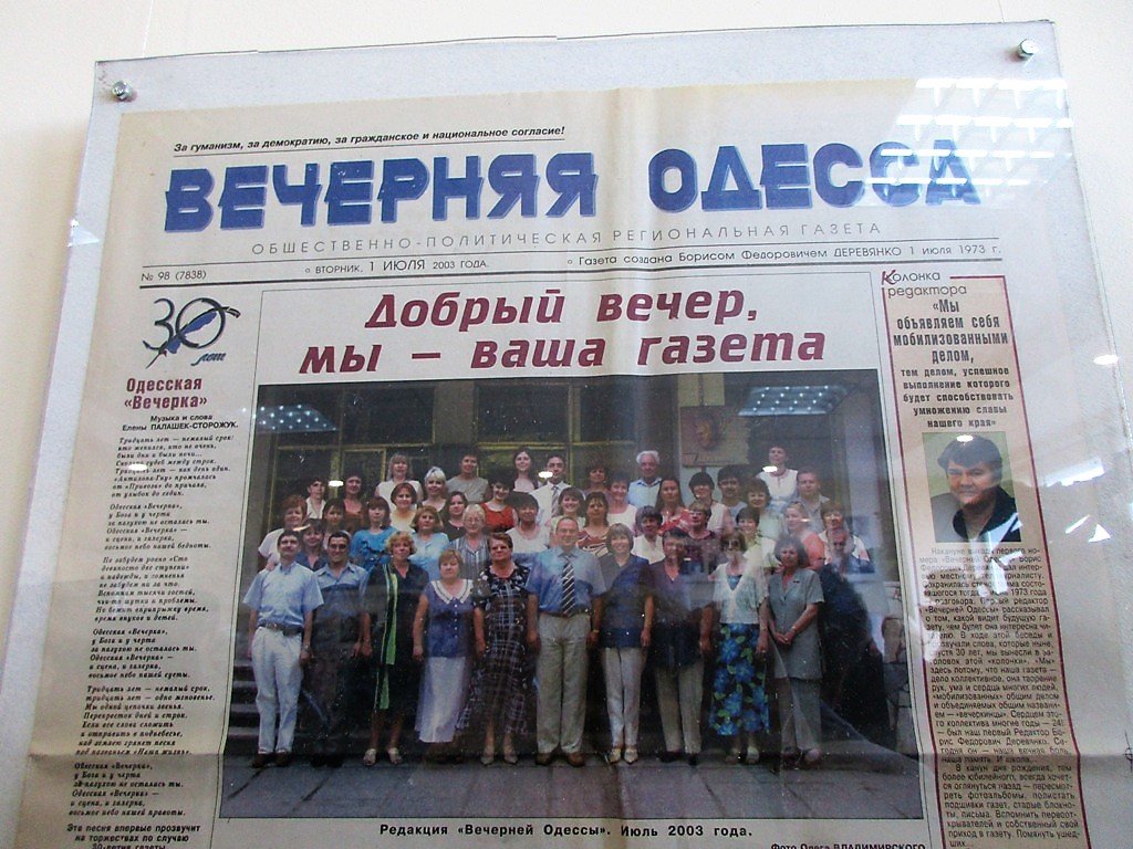 — Счастлив, что к 80-летию Бориса Деревянко мы открываем Музей «Вечерней «Одессы». К его юбилею пока готов только первый зал, полностью посвященный Борису Федоровичу — первому редактору газеты. Но нам еще очень важно, чтобы только-только созданный Музей стал достоянием всех одесситов, чтобы сюда приходили и жители Южной Пальмиры, и гости города, чтобы он был по-настоящему живым, стал местом споров, обсуждений, чтобы он постоянно пополнялся новыми экспонатами.
