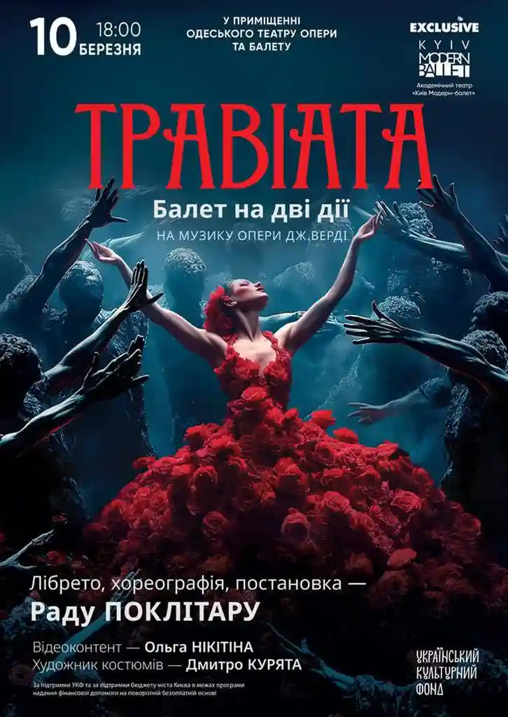 Балетная версия известной истории любви по мотивам оперы Джузеппе Верди поставлена хореографом Раду Поклитару. Постановка сочетает современную хореографию, мультимедийную сценографию, сложную световую партитуру и авторские костюмы, создавая эмоционально насыщенное сценическое действие.