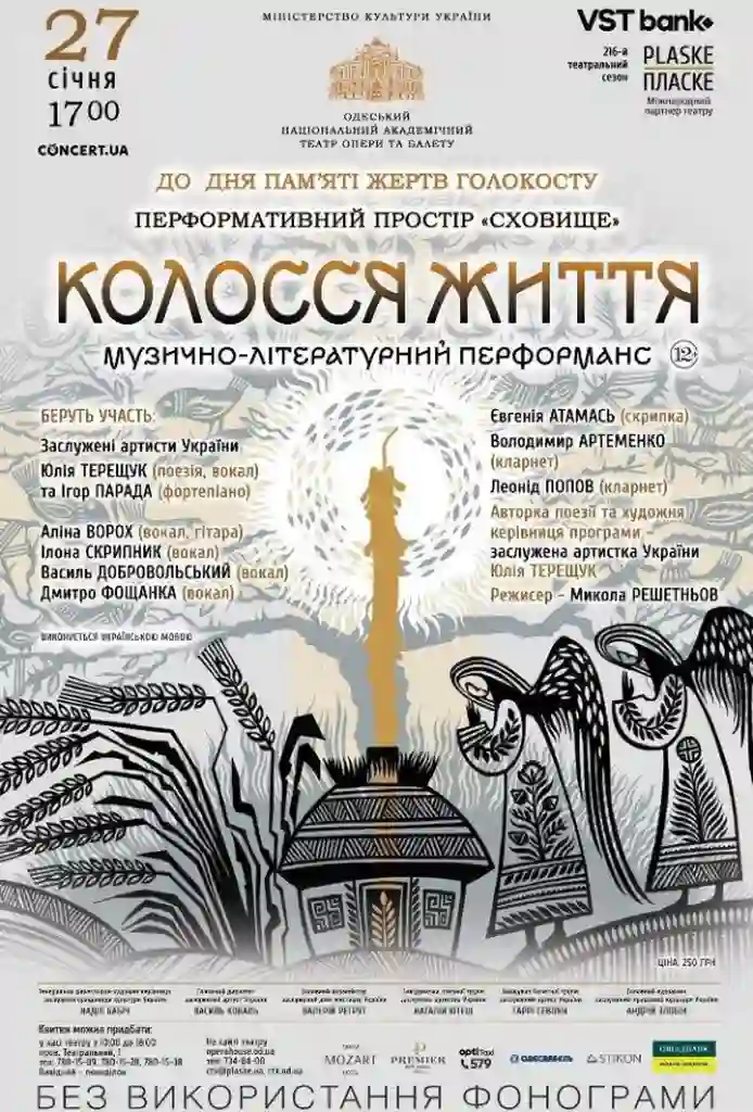 Ко Дню памяти жертв Холокоста в Одесской опере покажут глубокий перформанс, посвященный темам памяти, истории и человеческого достоинства. В программе — музыка украинских композиторов, авторские произведения солисток театра и поэзия в исполнении заслуженной артистки Украины. Событие состоится на сцене в укрытии.