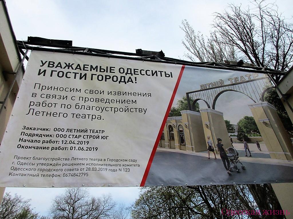 Итак, по порядку: работы в Летнем продолжаются. Визуализация проекта, который уже все теперь называют «проектом Шпинарева», украшает стену со стороны Горсада. У входа в Летний театр вывешен официальный плакат о начале и об окончании (1 июня сего года) работ в Летнем театре.