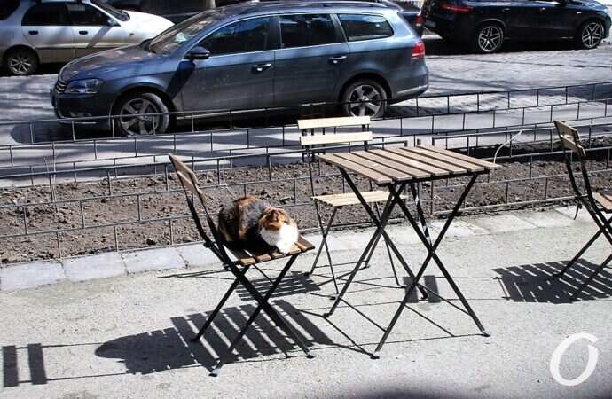 Активничают улично-парковые одесские коты, которые сразу сообразили, что поедание на скамейках сулит и им кое-какую выгоду.