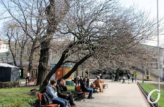 Кто-то еще в зимней одежде, у кого-то лето наступило вместе с заработавшими фонтанами. Где-то что-то уже распустилось, глаз радует, все остальное — только готовится, и вообще настоящая весна для многих в центре Одессы начинается, когда распускается иудино дерево в Горсаду. А оно пока ведет себя тихо.