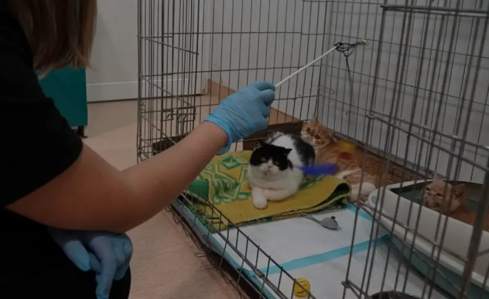 Особенно сложная ситуация у кота по имени Адам. У него обнаружили FIP — кошачий инфекционный перитонит, вызванный коронавирусом. Он почти не социализирован, нуждается в постоянном уходе, ежедневных процедурах и медицинском наблюдении. Также у него акне, и врачи ежедневно обрабатывают его кожу хлоргексидином.
