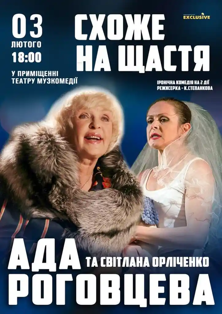 Ироничная и одновременно трогательная комедия по пьесе «Беглянки» рассказывает историю двух женщин, которые случайно отправляются в совместное путешествие. В главных ролях — Ада Роговцева и Светлана Орличенко. Спектакль отмечен премией «Киевская пектораль», а Роговцева была признана лучшей актрисой года.