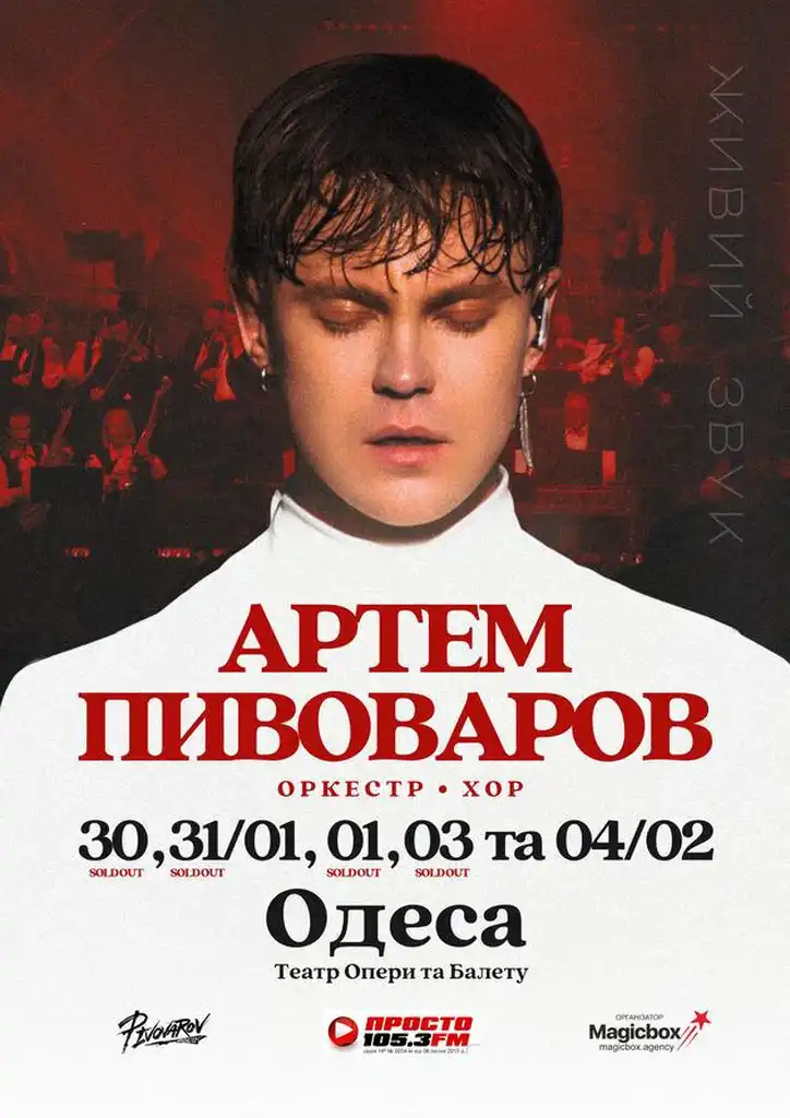 Пять вечеров подряд Артем Пивоваров представляет в Одессе масштабное концертное шоу, в котором современная украинская музыка сочетается с академическим звучанием. В программе — симфонический оркестр НАОНИ, мужской хор капеллы имени Ревуцкого, народные инструменты и песни из проекта «Твои стихи, мои ноты». Все концерты имеют благотворительную цель — собранные средства направят на поддержку ВСУ.