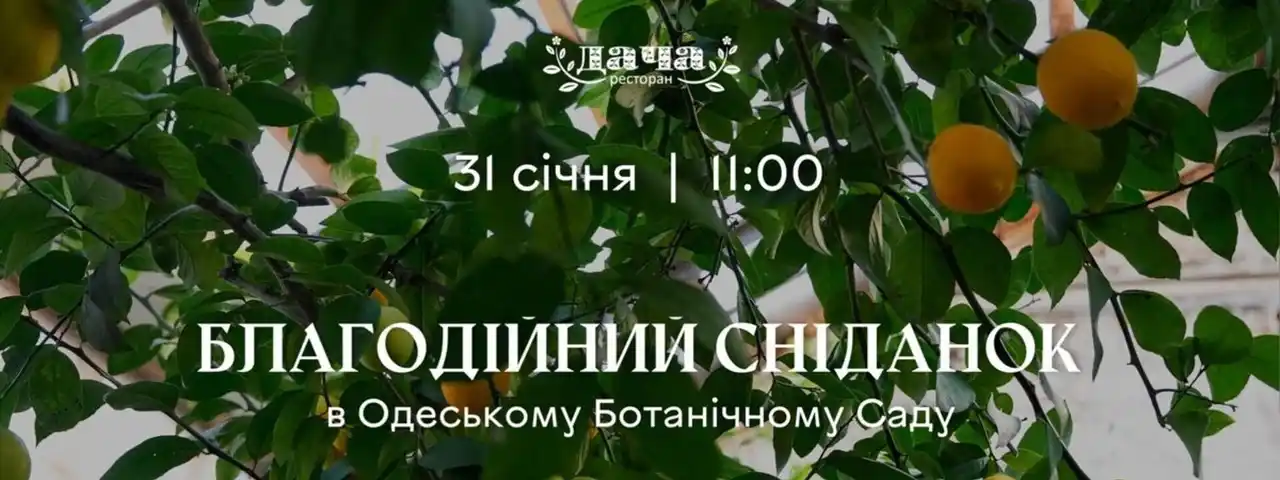Ресторан «Дача» организует благотворительный завтрак в поддержку Одесского ботанического сада, оранжерея которого пострадала в результате обстрелов. Гостей ждут авторские одесские завтраки от шефа, живая музыка и атмосфера зимнего сада. Количество мест ограничено, все собранные средства пойдут на реставрацию.