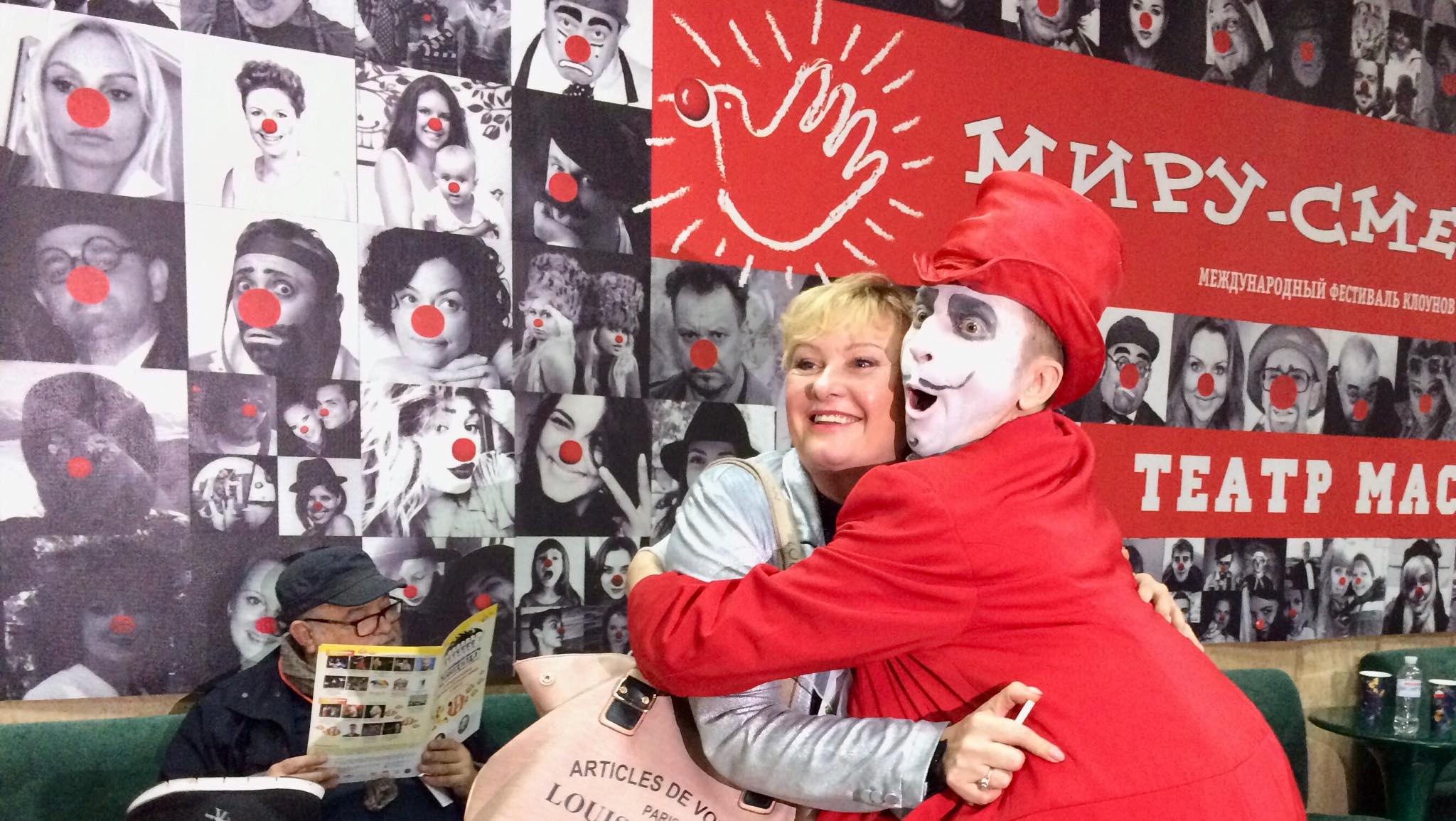 Перед официальным стартом «клоунского дня», на сцену пригласили одесского скульптора Михаила Реву, который презентовал небольшую статуэтку, посвященную мероприятию: клоуна без рук, но с ярко выраженным носом.