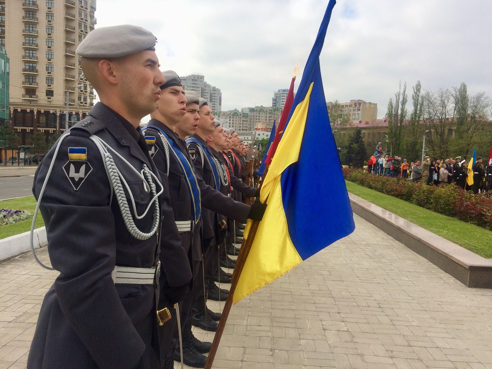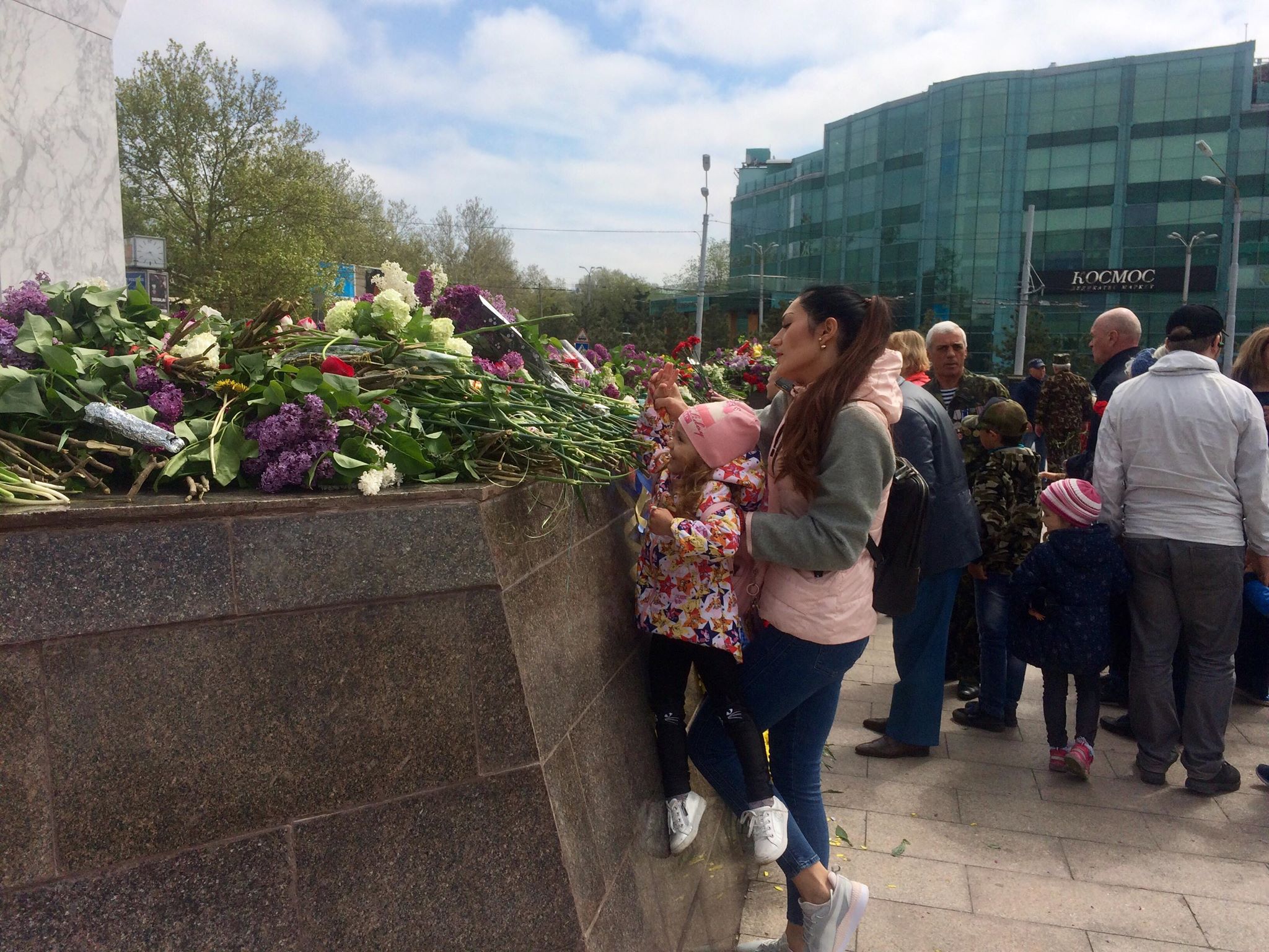 На площади 10 Апреля собралось несколько сотен людей. Собрались люди всех возрастов – как дети, так и ветераны войны.