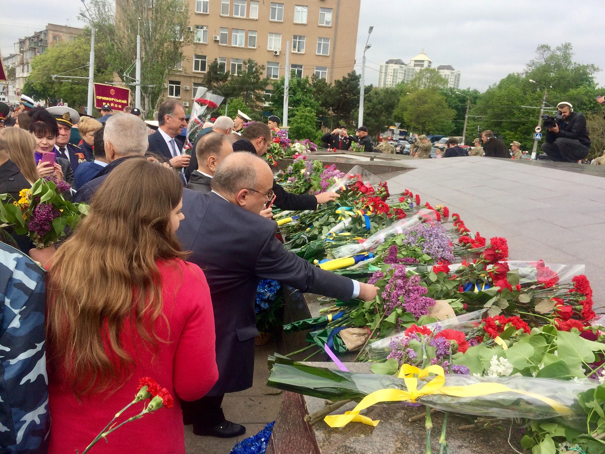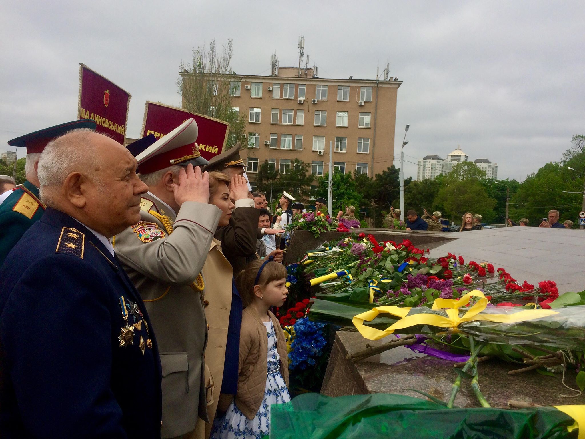 На торжественное мероприятие, конечно, пришли и чиновники. Они вместе с ветеранами первые возложили букеты на мемориал «Крылья Победы», затем чиновники удалились.