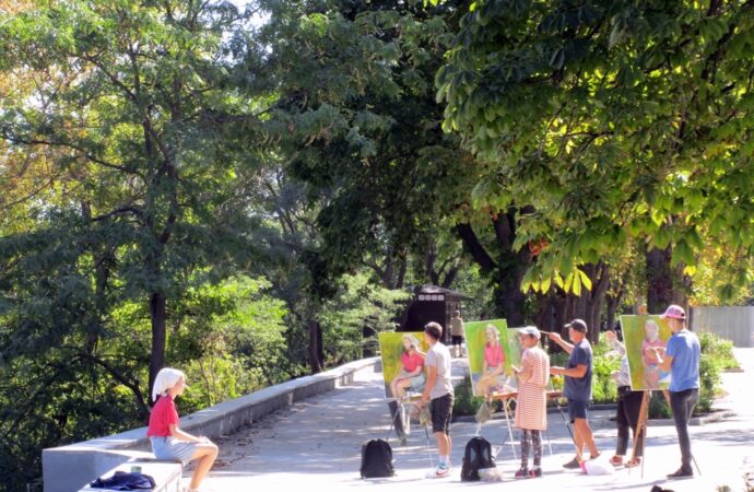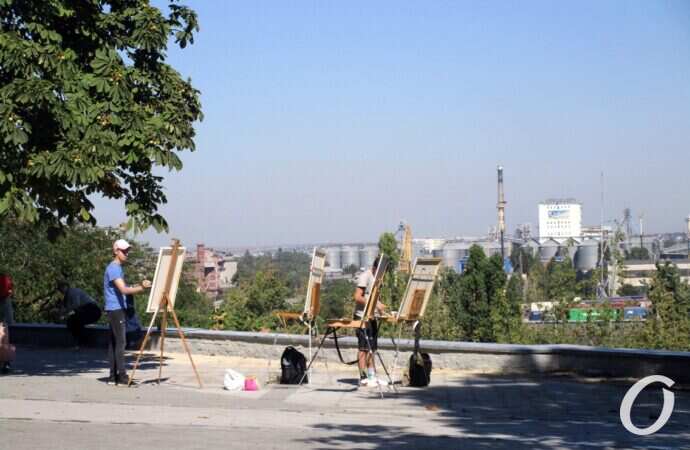 Сейчас рабочие заняты устройством очередного ограждения — от Торговой и дальше, ближе к ул. Преображенской. А мы проходим по бульвару Жванецкого по тем местам, где уже гуляют люди и творят одесские художники.
