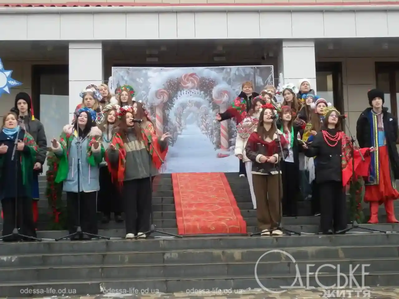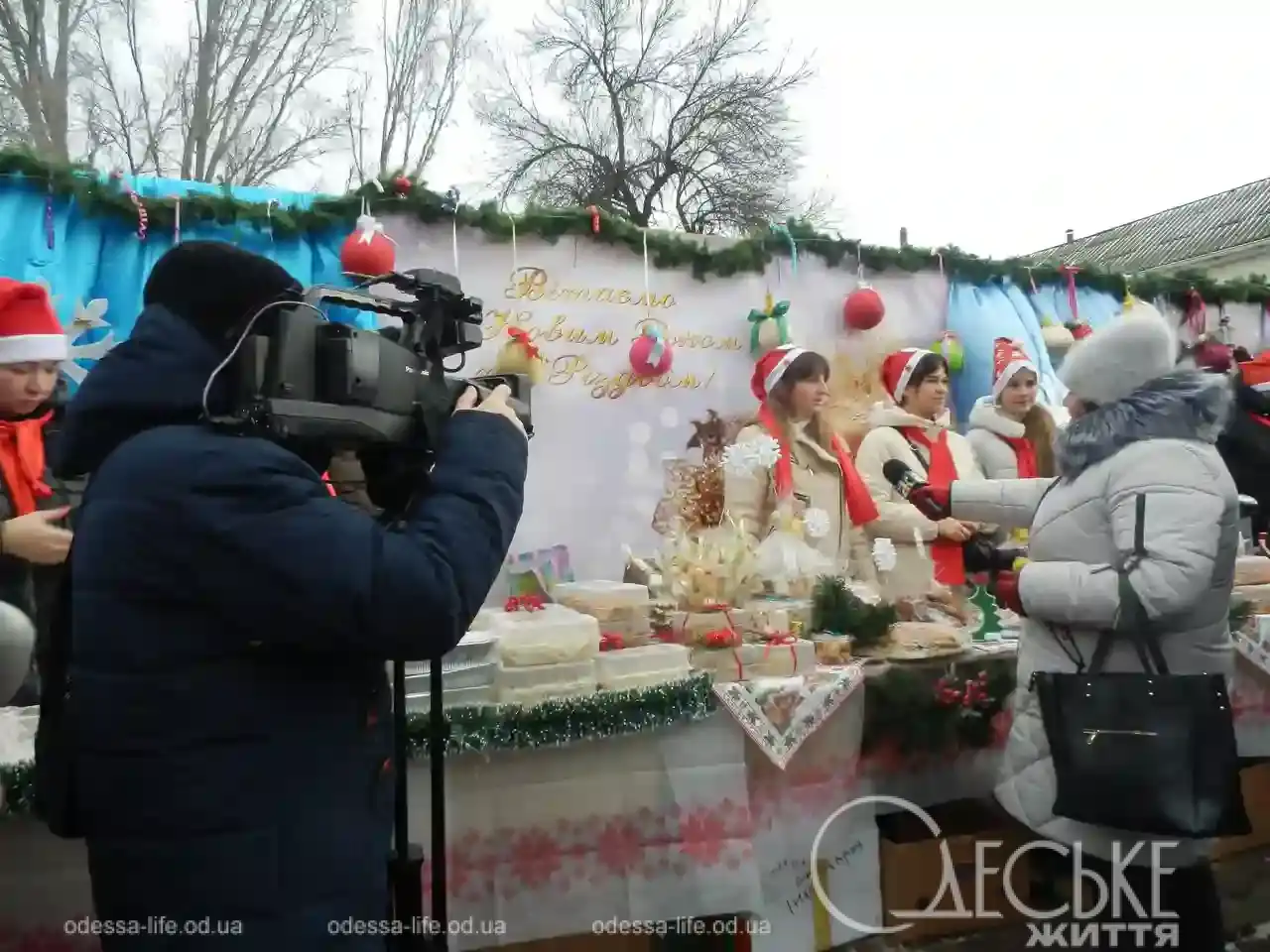 Создавалось впечатление, что напротив кинотеатра «Родина» действительно собралась вся балтская семья. Многолюдно, шумно, разнообразие локаций, парни и девушки в украинских костюмах, столы ломятся от разнообразных украинских блюд, поздравления с рождественско-новогодними праздниками и здравицы Украине и ВСУ — именно такой сейчас является главная локация ярмарки.