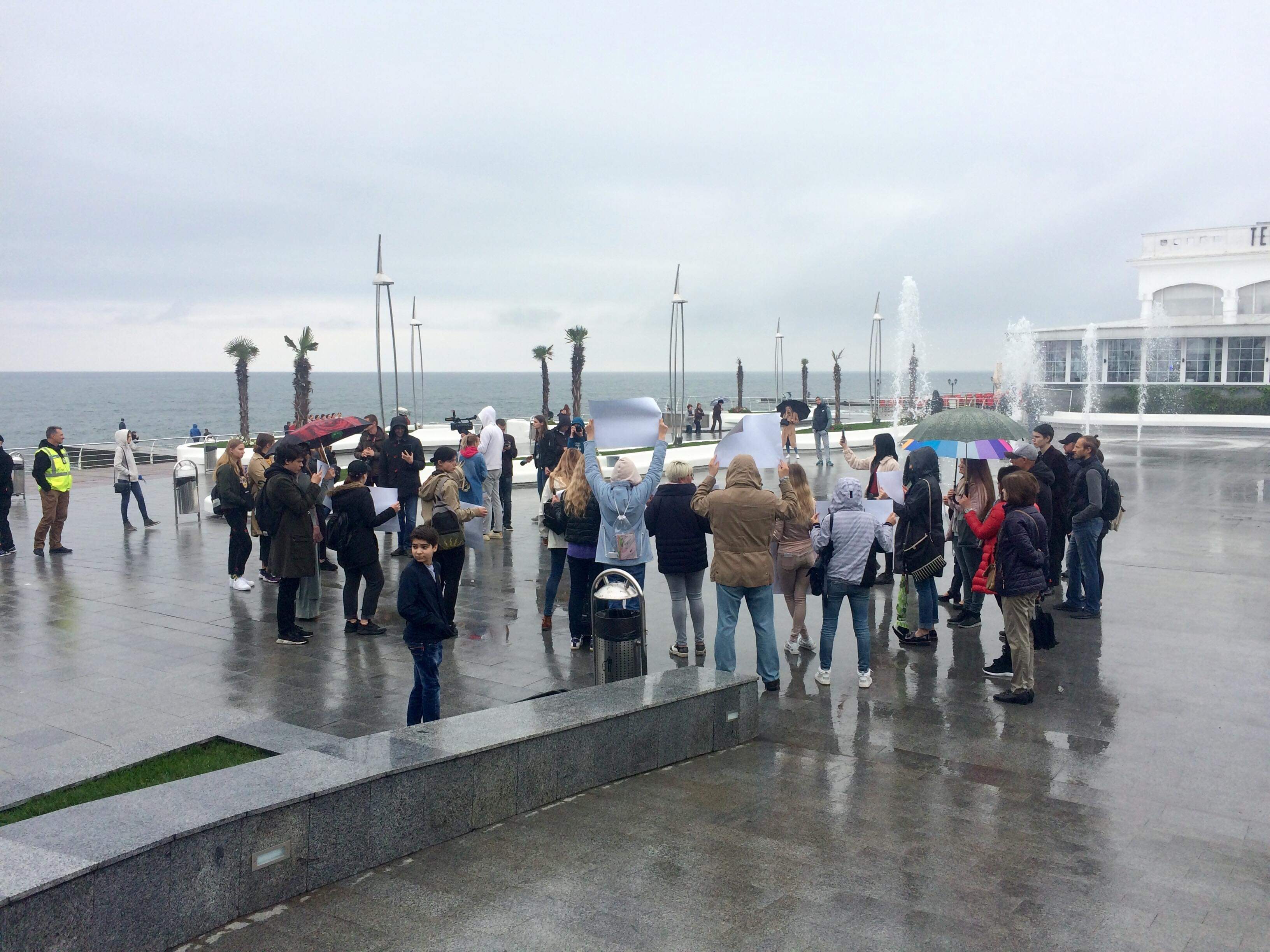 Эту мысль участники пикета пытались донести при помощи громкоговорителя до всех, кто гулял возле дельфинария и собирался посетить представление. Но звуковая аппаратура «Немо» оказалась мощнее, поэтому от входа митингующие переместились к фонтанам.