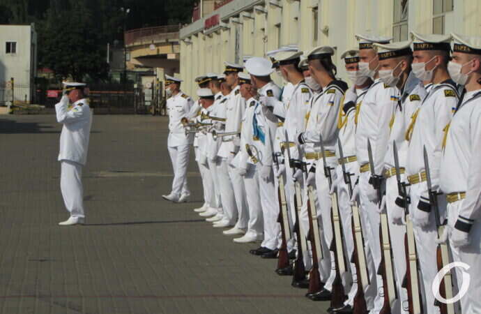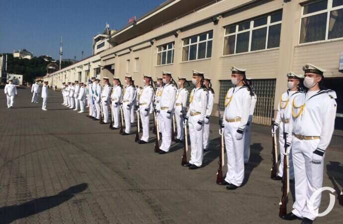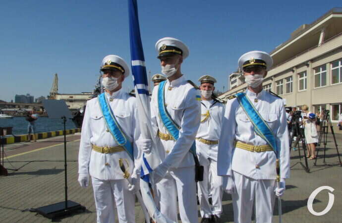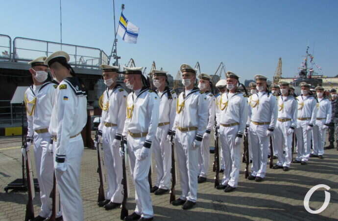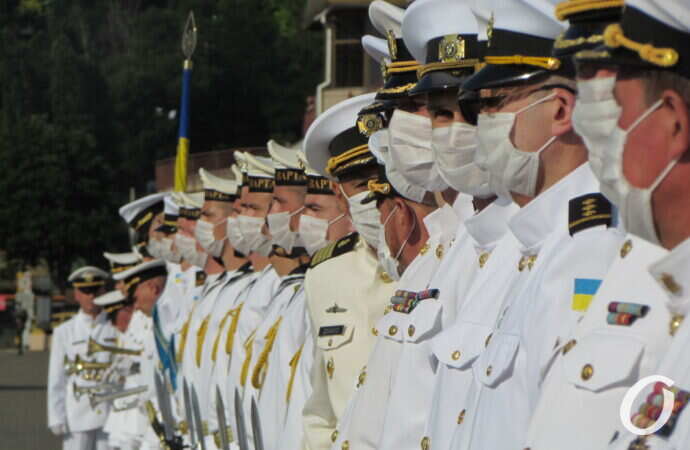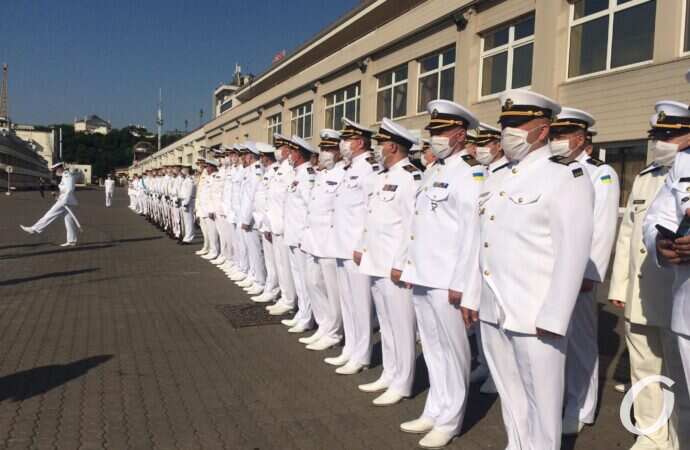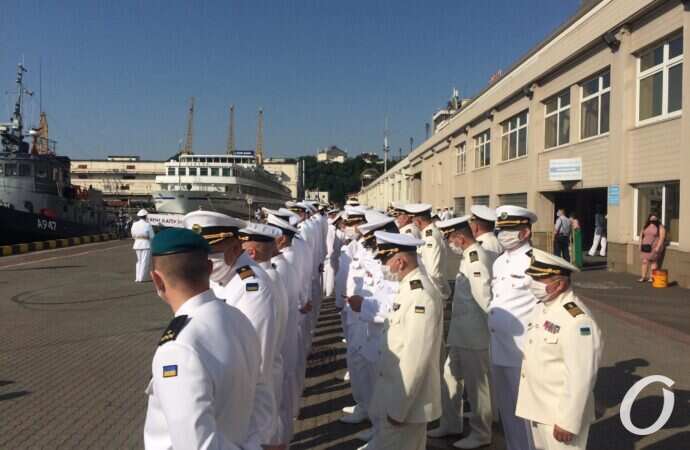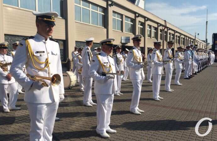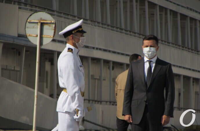 На причале Одесского морского вокзала, за несколько часов до прибытия президента Украины Владимира Зеленского, начали собираться моряки. Как всегда – в белоснежной парадной форме, но, теперь ещё и в масках. Рядом с ними оркестр.