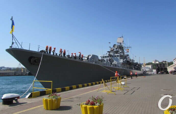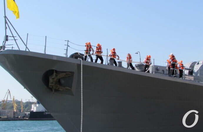 Затем он прошел по трапу на борт «Гетмана Сагайдачного». Часть моряков отправилась следом за ним. Спустя 15 минут корабль отошел от причала. Постепенно набирая скорость, фрегат отдалялся от берега.