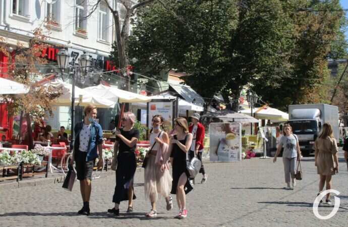 То ли курортники нас так и не покинули, то ли за ощущением праздника люди привычно торопятся на главную улицу Одессы, но в разгар буднего дня, да еще Дня знаний, здесь многолюдно, активно и, как обычно, слегка базарно.