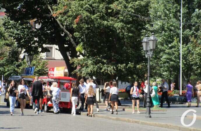 В Горсаду и на самой Дерибасовской создается ощущение, что все в белом. Это от одежды школьников, которые сегодня, наконец, вспомнили, каково это — прийти в школу «вживую». Впрочем, как жалуется мама пятиклассника в том же Городском саду, «никаких занятий, линейка только для малышей и выпускников, а наших детей разводили-разводили по классам через разные ходы, а потом отпустили».