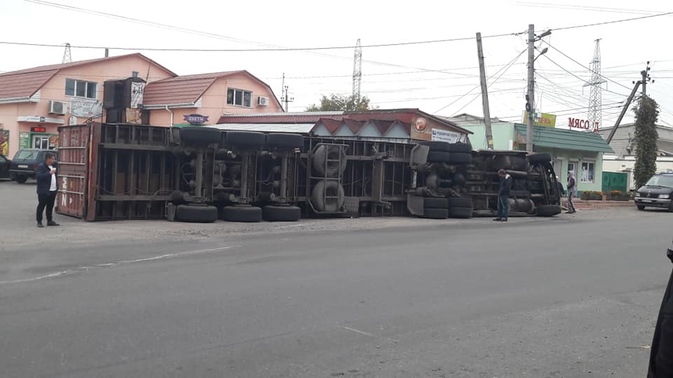 Сегодня ночью в Усатово крупногабаритная фура опрокинулась на бок вблизи магазинов и аптеки на ул.Гагарина.