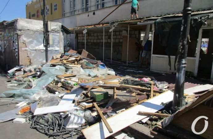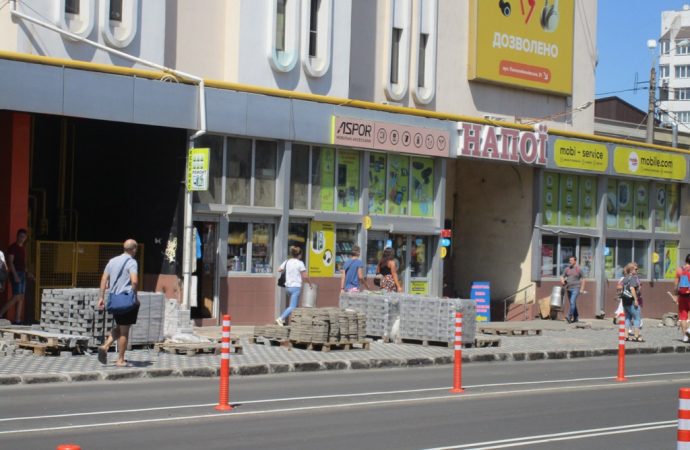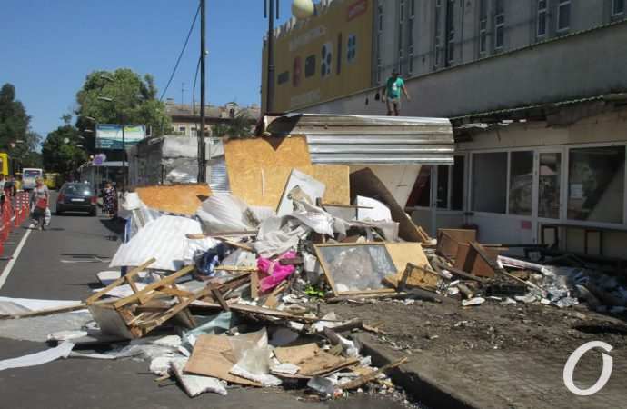 То есть, на сегодняшний день на этом участке получается так: с одной стороны сносят ларьки, на другой стороне продолжается ремонт тротуара, который проводится после преображения этого вечно неспокойного участка Екатерининской у Привоза.