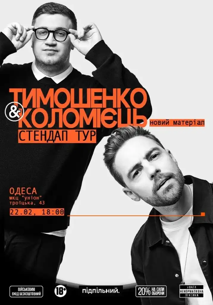 Вечер от резидентов «Подпольного Стендапа» обещает новый материал и острые темы. Антон Тимошенко представит «черную» программу с шутками о политике, обществе и личных историях. Юра Коломиец, известный по различным медиаформатам, возвращается к классическому стендапу с актуальными и более смелыми наблюдениями.