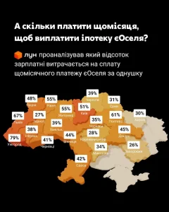 Аналитики исследовали, сколько процентов средней зарплаты идет на погашение кредита за жилье по программе «єОселя» в разных уголках Украины.