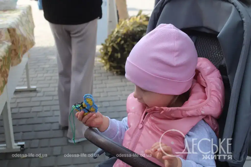 Местная жительница Раиса рассказала, что в Измаиле четвертый год работает волонтерский центр, где женщины плетут маскировочные сетки. На материалы для сеток делают пожертвования, но их недостаточно. Поэтому было решено устраивать ежемесячную благотворительную ярмарку. Раиса жалуется, что очень не хватает рук для плетения сеток. Женщины с десяти утра до шести вечера работают в центре. Но нужно еще сделать изделия для следующей ярмарки. Поэтому, возвращаясь домой, вместо домашних дел продолжают вязать брелки, браслеты, обереги — все, что может продаться. На ярмарке обычно проводят беспроигрышную лотерею за донат.