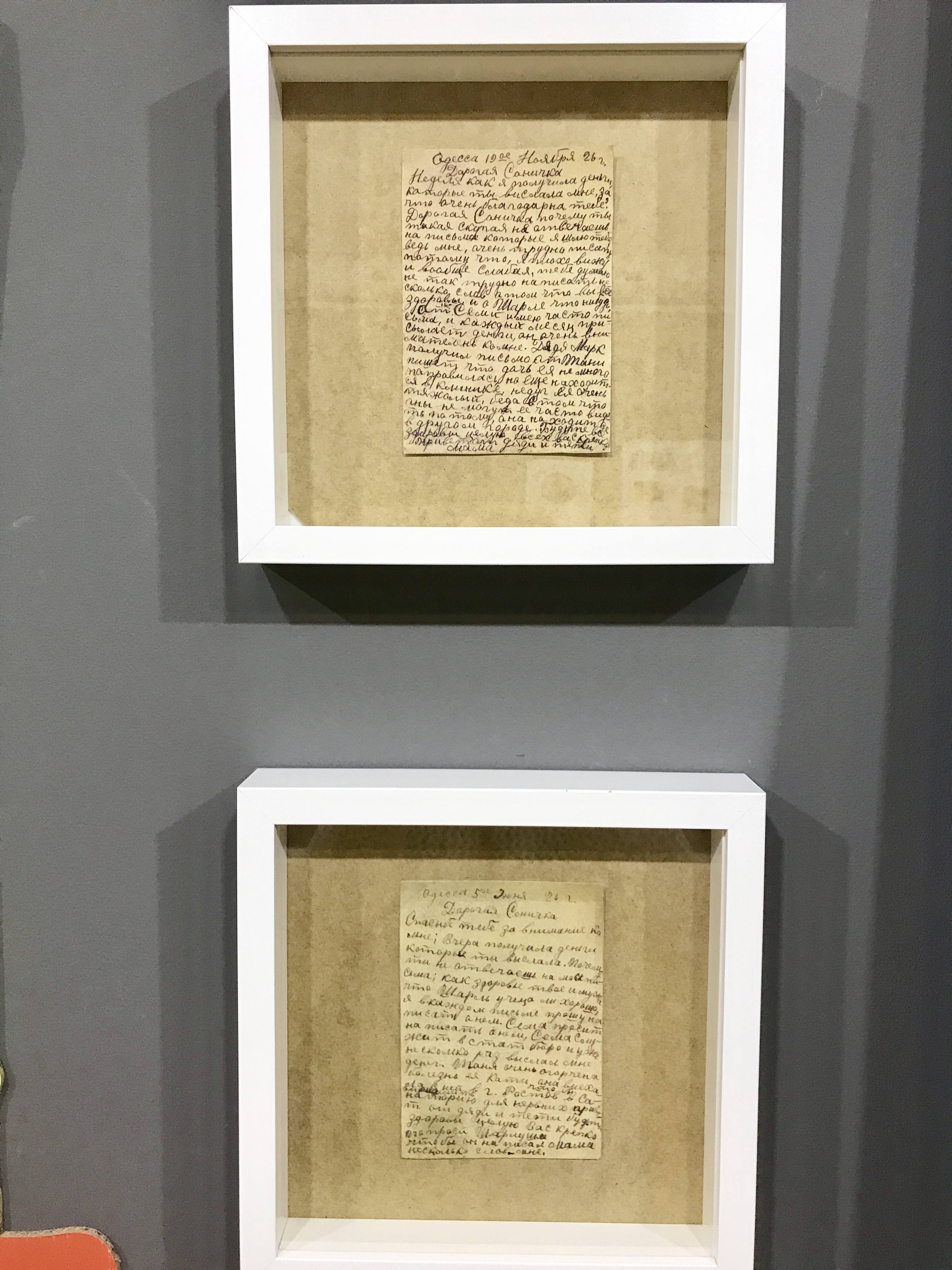 На выставке представлены как оригиналы, так и копии документов, касающихся ее рождения, нотариальные договоры, переписка с отцом и матерью, проживавшими в Одессе, которым Соня помогала материально.