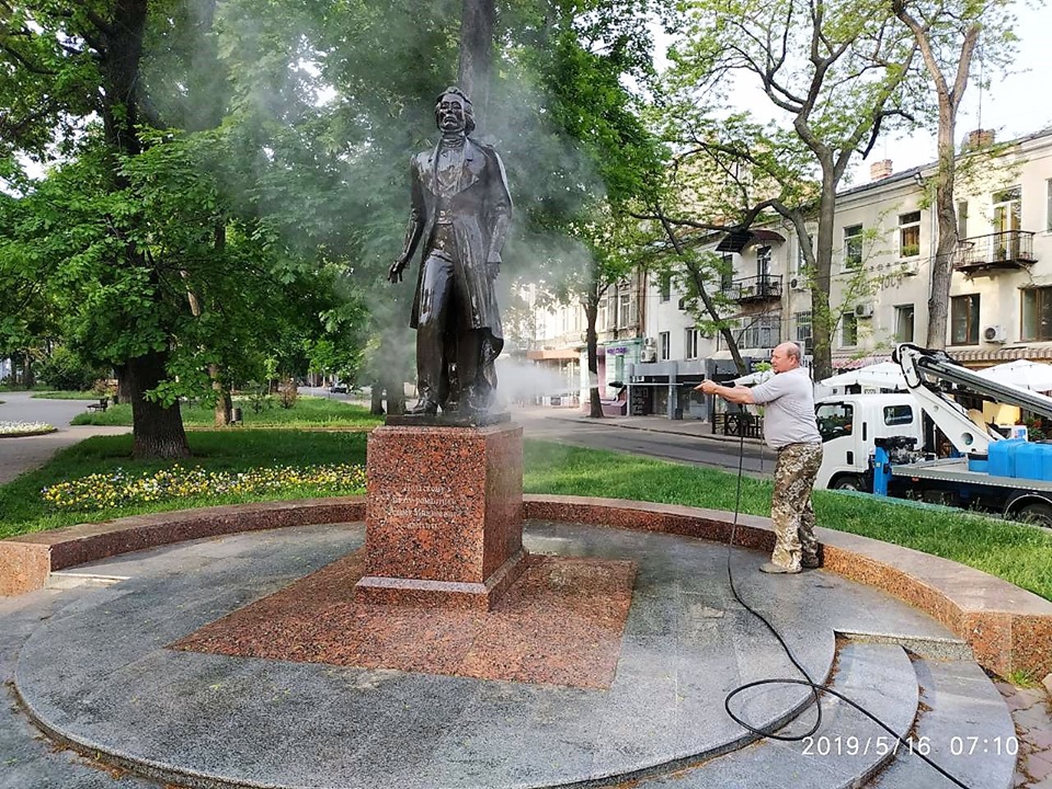 На этой неделе коммунальщики уже вымыли памятники: Александру Пушкину, Иосифу Дерибасу, Григорию Маразли, Ивану Франко, Адаму Мицкевичу, Вере Холодной, а также фигуры Спартака возле одноименного стадиона, Девочку на дельфине возле театра Музкомедии и якорь-сердце.