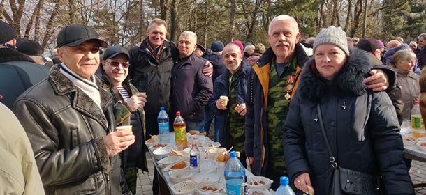 Продолжился праздник фронтовым привалом на площадке «Огни маяка», где воинов-интернационалистов ожидали фронтовые сто грамм и солдатская каша, приготовленная на полевой кухне, общением и фото на память.