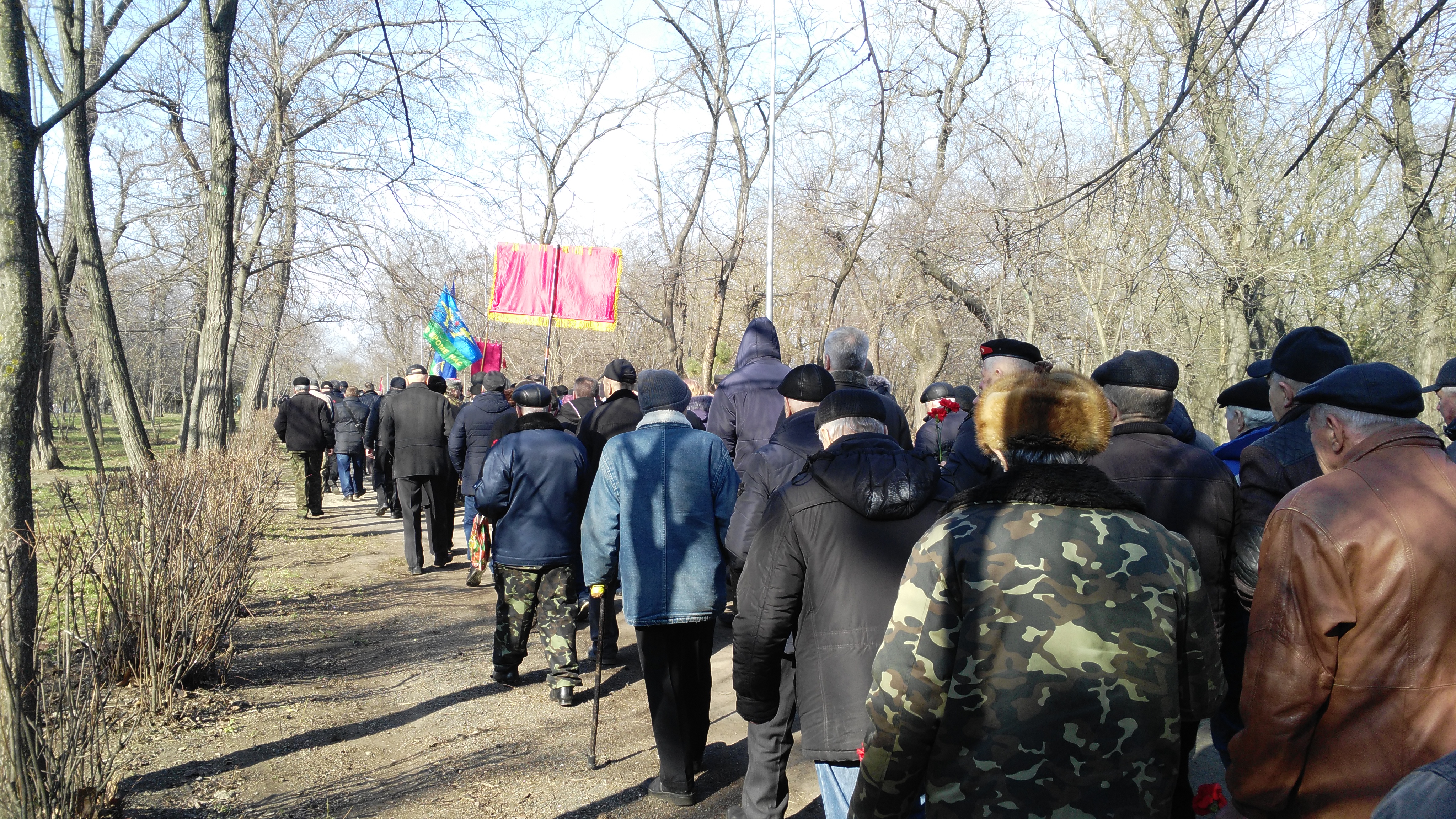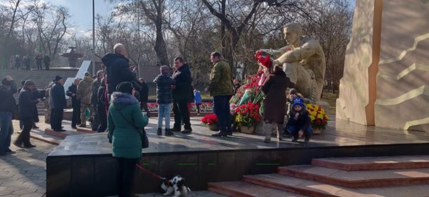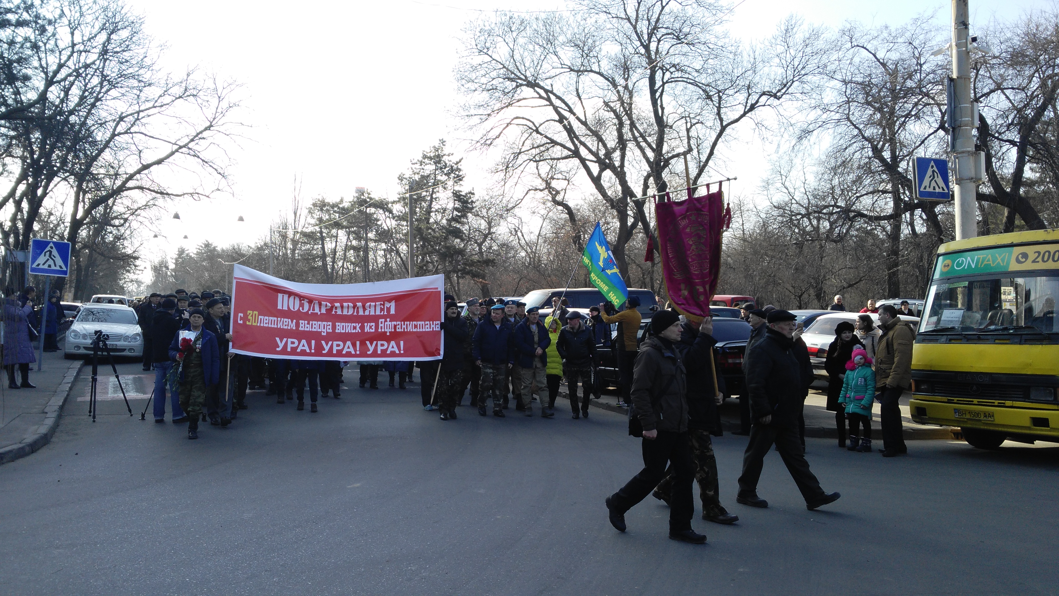 После панихиды ветераны и члены семей военнослужащих в сопровождении военного оркестра и БТРа прошли колонной по улицам города до парка им. Т.Г. Шевченко к памятнику воинам-интернационалистам. Там ветераны возложили цветы и почли своих погибших товарищей минутой молчанья.